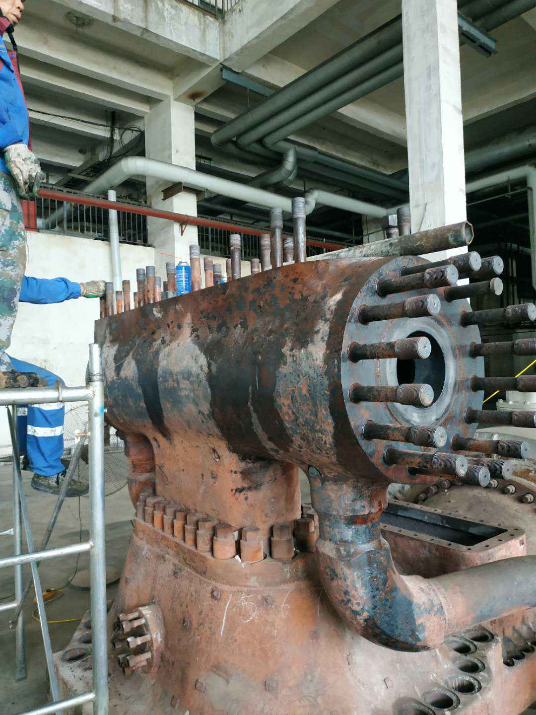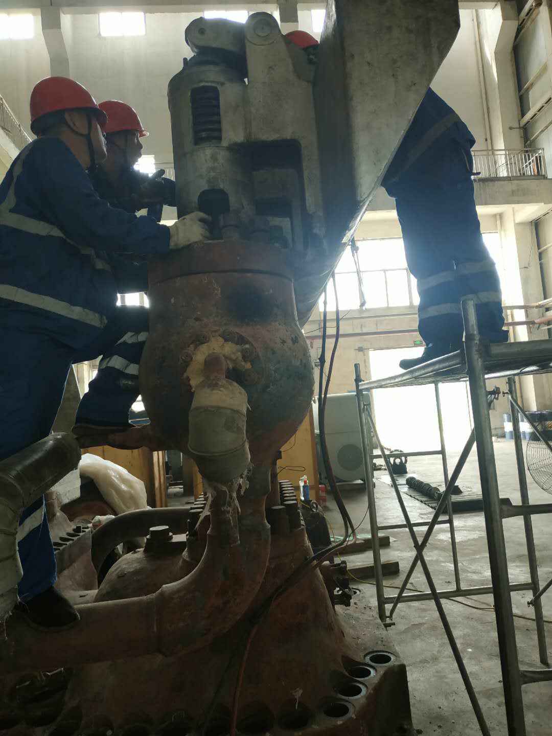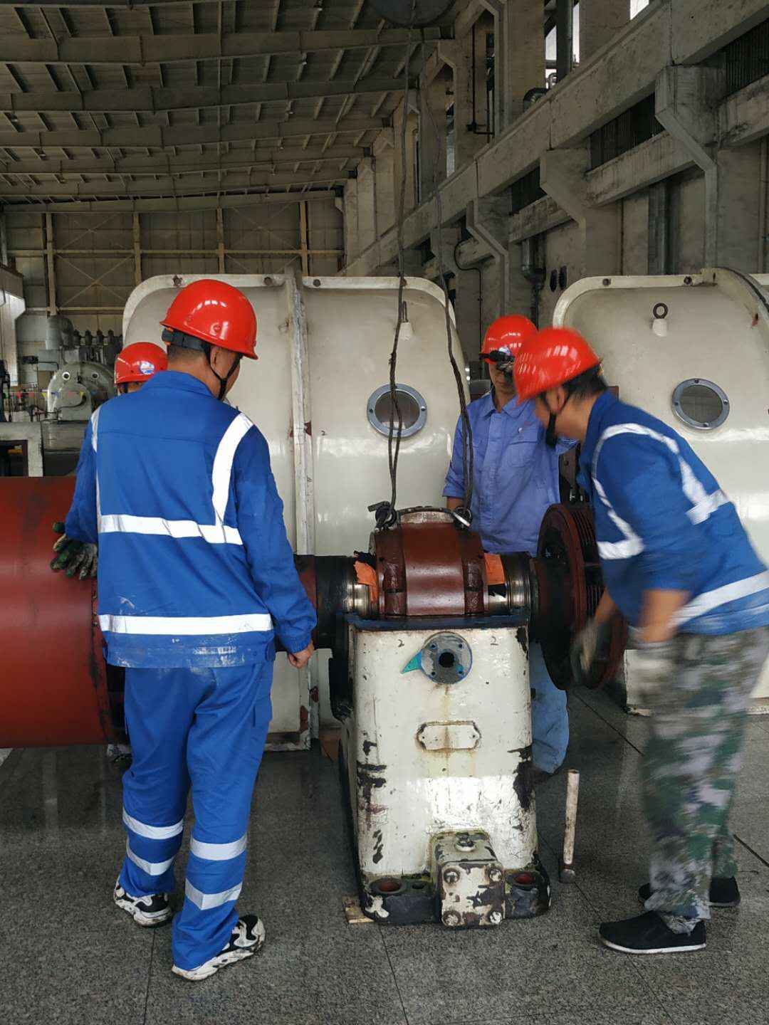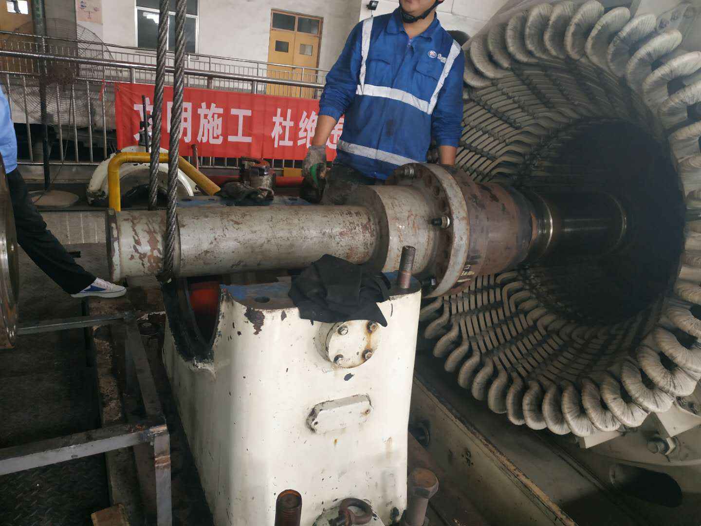 由乐鱼手机站官方版网站登录入口-乐鱼(中国)承建的山东海能化学有限责任公司机组B15MW背压式汽轮机组(原 C25抽汽凝汽式机组)大修工程现已完成凝结水泵、油站检修工作,发电机前后轴承座基础垫铁研磨工作,目前蒸汽室螺栓的拆卸工作及发电机定子与转子的清理工作陆续启动,下气缸吊隔板工作也在稳步进行中。